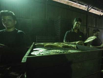 We also stopped to see one of the Maldives important industries, a small factory where skipjack tuna was being smoked and dried for export to Japan. This is a special process that lasts for many days and uses wood imported from Japan for smoking to produce katsuobushi, an important flavoring ingredient in dashi broth and many other Japanese dishes. There was a bit of wildlife as well – we made a brief stop at a pleasant little resort and strolled through the grounds out to the beach. Beyond the beach chairs, in the crystal clear water of the shallows, there were many small black-tipped reef sharks, great subjects for photography in the sparkling sunlight.