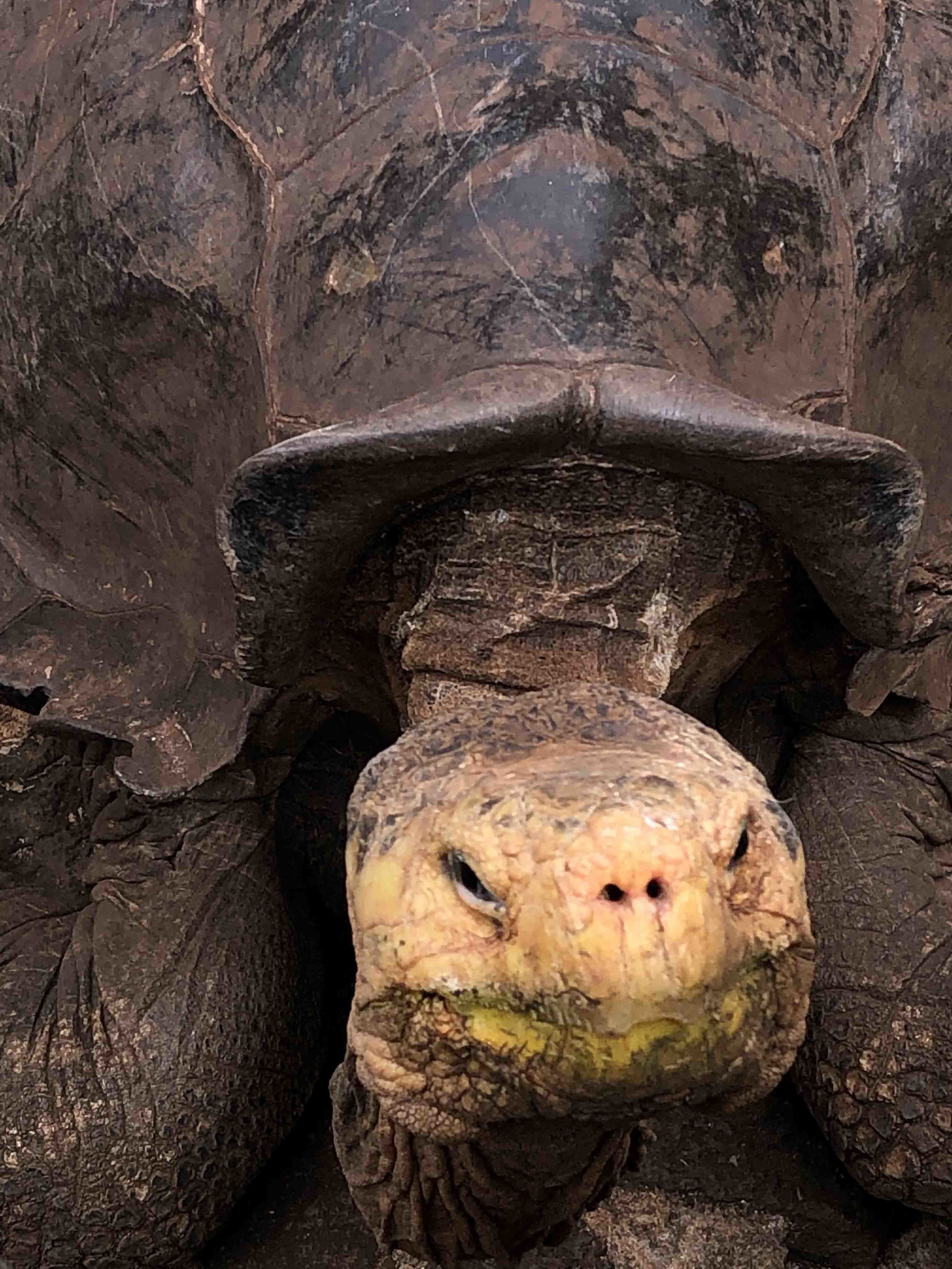 We woke up early in the morning as National Geographic Islander navigated along the northern part of Isabela Island. Slowly the sun appeared above the clouds surrounding Volcano Wolf. We spotted our first birds as Galapagos fur seals returned to shore from their night hunt. We enjoyed a great breakfast. Afterward, expedition leader Vanessa called everyone to the bow to celebrate as we crossed the equator. Our guests happily crossed the line. Approaching Punta Vicente Roca, the visitor site, we spotted Galapagos sea lions and a good number of ocean sunfish. The first activity of the day took place as we dropped anchor at Punta Vicente Roca. This is a spectacular geological site. The combination of the former volcano’s tall cliffs and the tuff cones formed later adds an amazing contrast to this unique visitor site. Our best tools for exploration, our Zodiacs, were lowered down, and off we went to explore the coast. We observed Nazca boobies and blue-footed boobies resting on the small ledges of the tuff cones. Galapagos sea lions swam close to our Zodiac, and Galapagos penguins rested on a broken piece of the tuff cone after feeding. What a wonderful sight! In a calm area, we found a good number of Pacific green sea turtles. The morning’s activities ended with snorkeling. Pacific green sea turtles, plenty of colorful fish, Galapagos marine iguanas and flightless cormorants surrounded us. It was a phenomenal experience! The ship was repositioned toward Fernandina Island. The youngest island of the archipelago, Fernandina is a highlight of our expedition. This island shows our guests the beginning of life. We observed animals thriving in the hostile environment. Pioneer plants like lava cacti grow on the lava fields, breaking down rocks little by little to create soil for the next generation of plants. Punta Espinoza is known for its huge colony of Galapagos marine iguanas. It is hard to distinguish the iguanas from rocks since they are so dark in color. On the other hand, colorful Sally Lightfoot crabs added contrast to the young, dark lava fields. We ended our walk as the sun was setting, returning to the ship with great memories. It was a fantastic day in the western part of the archipelago.