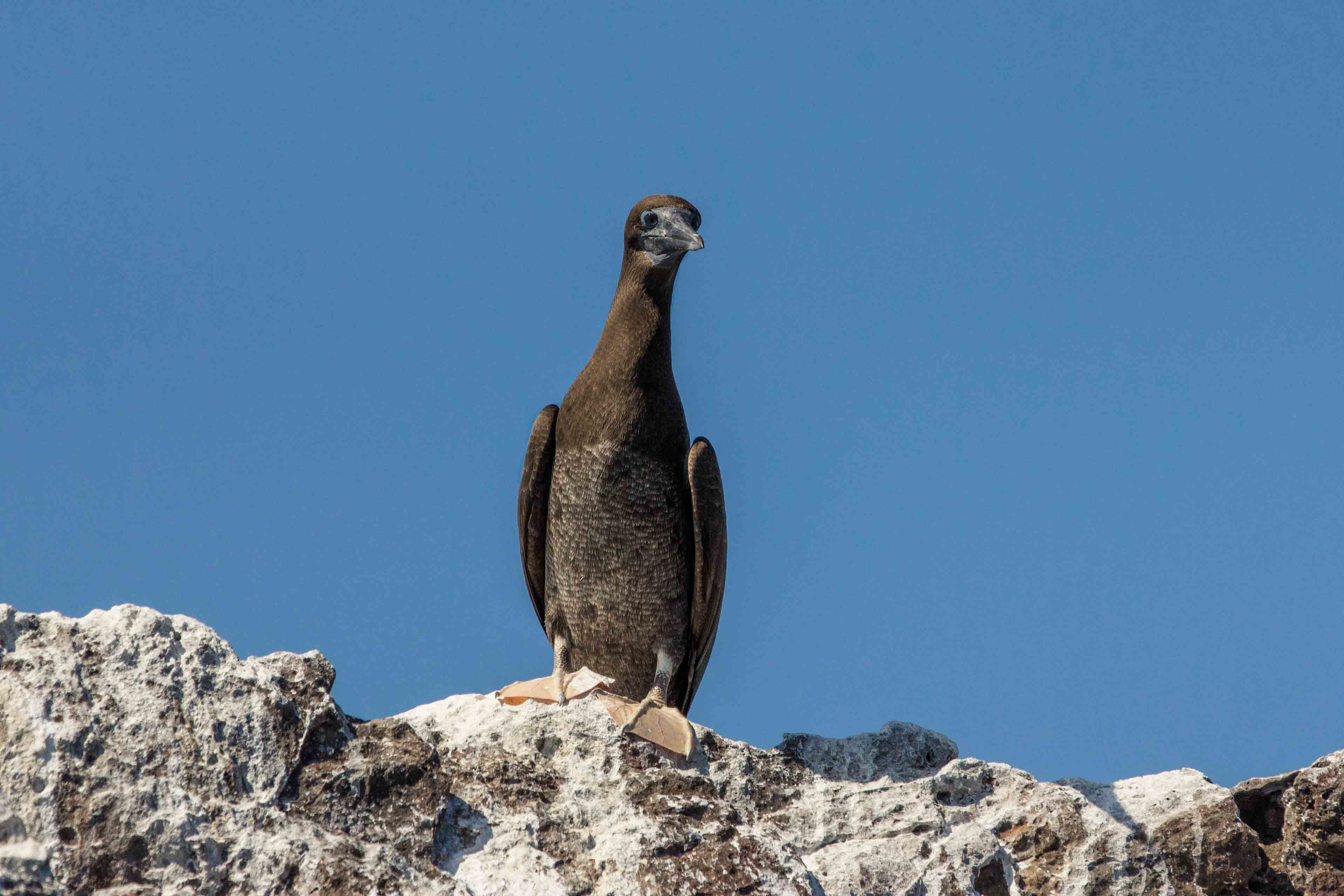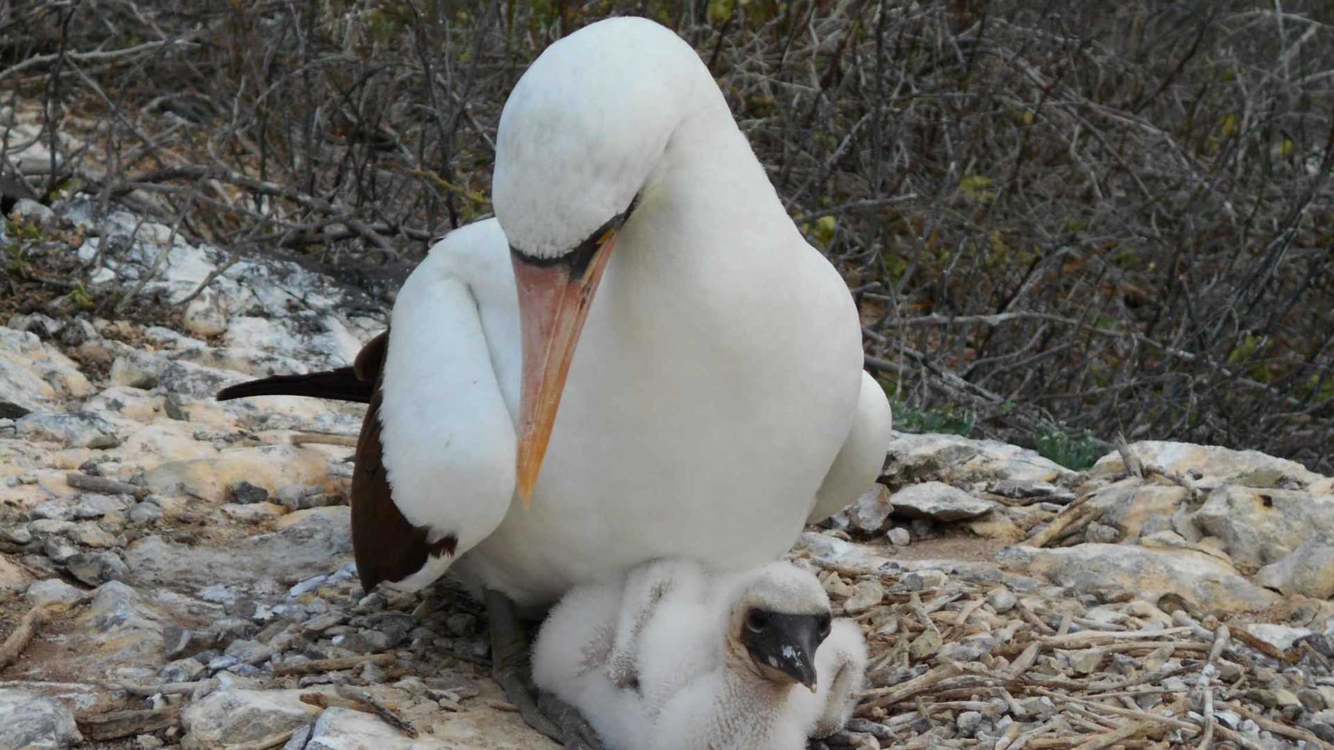 Today is the last day of the year, and we woke up in the northern side of Española Island for our first full day of the expedition. We kayaked before breakfast, and it was fantastic! We saw sea lion pups playing close to us, a couple of sea turtles, and blue-footed boobies. After breakfast, we had a wet landing on a white sandy beach called Gardner and were greeted by sea lions and mockingbirds. Their lack of human fear gives them a playful and relaxed attitude. Other groups went deep-water snorkeling and had the opportunity to play with sea lions for at least half an hour.