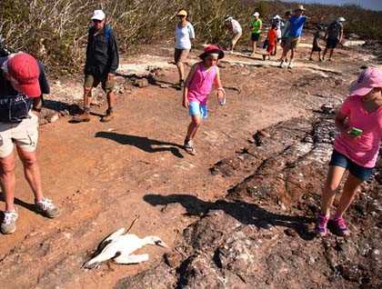 Taking this walk was like being transported back in time. There were birds flying all over, like in prehistoric times, and lava formations resembling the first foundation of Earth. Later, it was time to return to the ship and reminisce about the many experiences of such a wonderful week. As we look back and gaze at the islands for the last time, this place now seems to be timeless to us. It is now deep within our hearts and our experience has been unforgettable on these special islands, where the wildlife has no fear and allows us to realize that we are not so different.