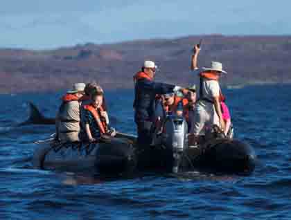 We wanted to see everything the island could possibly offer, and so from sunrise to sunset, we kept busy. As the day opened, those on the bow watched the captain guide our vessel into “Darwin’s Bay.” In itself, this is a spectacular geological formation: the crust of the island collapsed into an emptied volcanic caldera many millennia ago. The inside of the bay is too deep to anchor, over 600 feet in places. Only over to one side close to the beach can the National Geographic Endeavour anchor safely. However anywhere outside the bay we could anchor with ease, the sea floor around the island not reaching much over 100 feet.