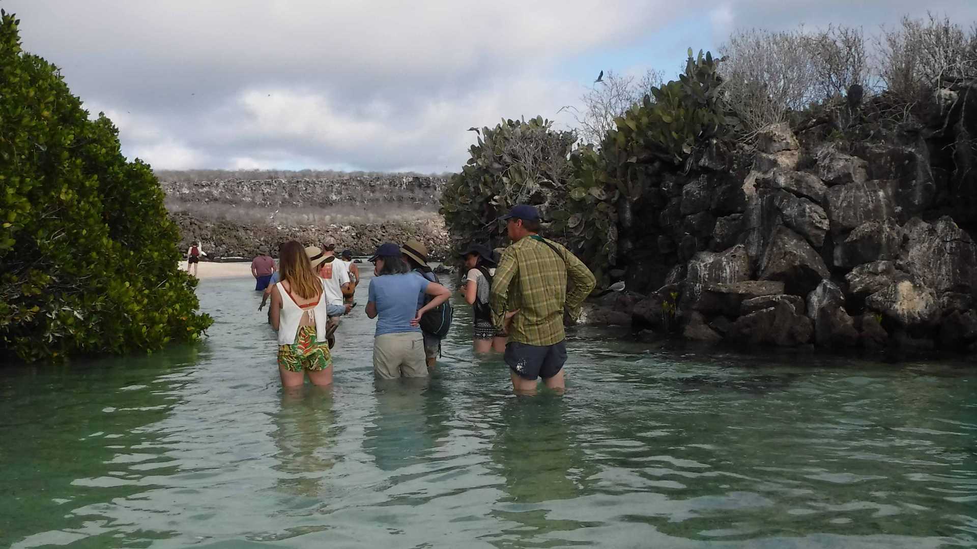 Today, National Geographic Endeavour II visited Cerro Dragon, located on the north part of Santa Cruz Island. We found one of the largest colonies of land iguanas. During our hike, we spotted the iguanas all around the trail. Some basked on the vegetation, and others were active. We saw the zigzag head movement they use to protect their territory and impress females. An Ecuadorian buffet lunch was set up in the dining room. We started with the traditional ceviche and ended with tres leches for dessert! We enjoyed snorkeling and Zodiac rides. We observed wildlife all over the place, including spotted eagle rays, sharks, blue-footed boobies, great blue herons, marine iguanas, and hundreds of other animals. They all reminded us why the Galapagos is so special.