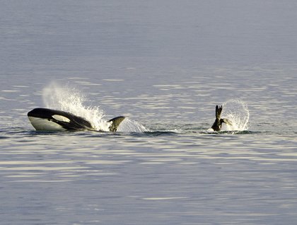 For the afternoon, we relocated the ship just to the north at the Inian Islands where we explored a few rounds on our small boats in the open ocean with Stellar sea lions investigating our boats and bald eagles soaring overhead. Little did we know that this was only the beginning of our amazing day! As we heading east down Icy Strait we encountered a pod of killer whales gliding along the glassy waters as the clouds hung low over the mountains of Chichagof Island. In the golden light on this last day of June, a group of Stellar sea lions porpoised out of the water with intent as the same pod of killer whales erupted into a frenzy of breaching, tail slapping and cooperative feeding. Were these a resident pod of killer whales that feed strictly on salmon or a stealthy hunting pack of transient whales that prey on sea mammals? Nobody was sure what really took place below the waters, however, we witnessed one of nature’s finest spectacles.