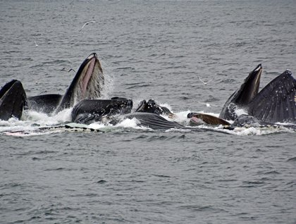 After leaving George Island we headed towards our anchorage at the Hobbit Hole in the Inian Islands. The Inians are very close to George and the small archipelago creates a bottleneck for the waters flowing in and out of Icy Strait; as a result, strong tidal currents stir the bottom, forming whirlpools and standing waves that bring nutrients and fish schools, making this an extremely productive area, well known among commercial and sport fishermen. We boarded our expedition landing craft to explore the Inians and were rewarded with numerous marvelous sightings of Steller’s sea lions, bald eagles, harbor porpoises, sea otters, and humpback whales. The sea otters in particular were very cooperative today and seemed to be as curious about us as we were about them. Sea otters were responsible for the Russian occupation of Alaska during the second half of the XVIII century, when as many as possible were hunted and their pelts sold to the Chinese. As a result, the sea otter population here diminished greatly (and went extinct in many other areas to the south, as far as Baja California in Mexico); today their numbers are increasing and sea otters are once again a common sight in Southeast Alaska.
