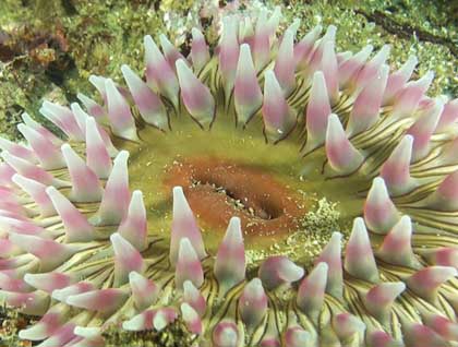 The early morning fog surrounded us and the National Geographic Sea Bird navigated cautiously, using the foghorn every few minutes; it seemed as if we were alone in the world and the beauty of the scene was remarkable. We soon arrived to George Island, where we spent the morning. Located off the northern shore of the large Chichagof Island, George is a very interesting place to explore. And we did so by hiking, tide-pooling, kayaking and in my case, scuba diving. Amy Sobesky and I went diving off George Island to take underwater video of the inhabitants of the kelp forest and rocky reefs, like leather and sunflower sea stars, painted and stubby rose anemones, kelp greenlings, and Pacific cod. Meanwhile, kayakers paddled along the shore looking at the rugged landscape and the occasional sea lion and harbor seal, whereas hikers reached the site of a former WWII post that was used to protect the northern entrance to the Inside Passage.