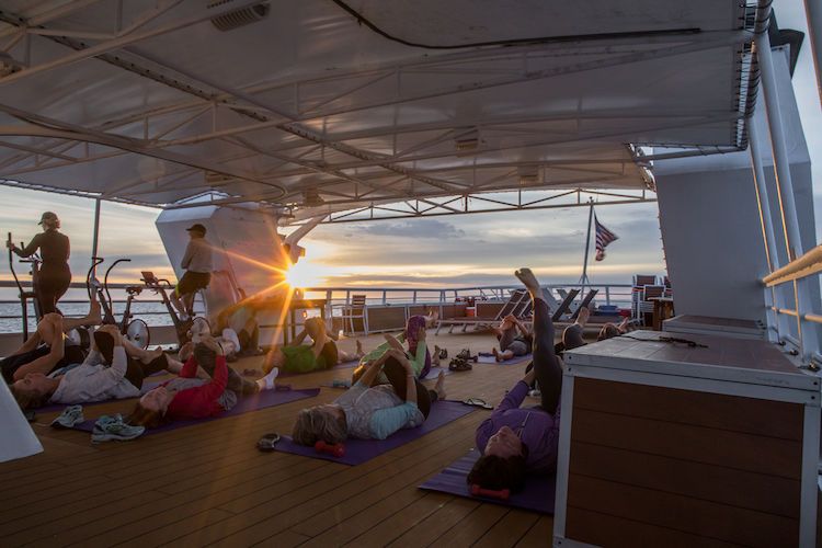 By mid-afternoon, we were in Dallman Bay surrounded by sun-illuminated, snow-covered mountainous islands and, of course, more humpback whales. The glass calm waters and warm (well, sort of) sunshine made this a perfect place to organize a polar plunge. Our fearless ‘swimmers’ jumped off the lower Marina Deck into the frigid water and then climbed back aboard as fast as humanly possible on the deck ladder…to the applause of admiring spectators.