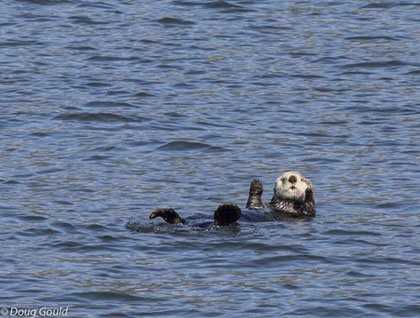 The weather was perfect, with clear skies and very calm seas. As the ship steamed north, guests with fresh coffee gathered on the bow and enjoyed views of sea otters, Steller’s sea lions, marbled murrelets, pigeon guillemots plus a variety of cormorants, loons, and ducks. During breakfast, expedition leader Larry Prussin introduced our two Park Rangers who will on board all day to interpret the sights and history of Glacier Bay.