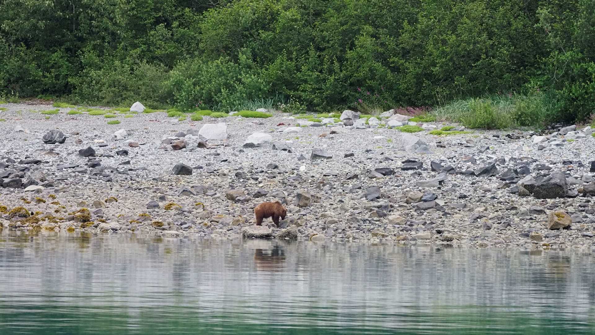 With sleepy eyes and coffee cups and hot beverages in hand, we began our day on National Geographic Quest in Glacier Bay with a delightful sighting of a brown bear. The bear meandered slowly along the shoreline, enjoying barnacles here and there as an early morning snack. Guests were able to observe the bear’s feeding behavior, and the rain did not put a damper a great start to the day!