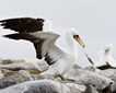 Right after breakfast we slowed to look for wildlife at South Marble Island. A pair of humpback whales (mother and calf) were also there, so we delayed approaching the island until they swam off. Steller sea lions growled and roared at each other on low rocks of the islands. We saw tufted puffins, and the more rare horned puffins, too. Their bright bill coverings will fall off after breeding season. Groups of black and white birds called common murres flew over the water in beautiful synchrony. As the ship departed South Marble Island, we looked behind and saw the humpback calf breach twice.