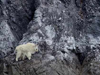 As we came onto the bow after the presentation we were treated to a black bear ambling down the beach, winding in and out of sitka alders and scratching its head against a log. More bear sightings followed: a second black bear grazing high on a hill, a sleeping brown bear sprawled on a beach, a potential mating pair of brown bears high on a mountain slope, a brown bear strolling through beach meadows. An eagle nest, complete with two adults standing guard, graced a spruce tree on Gloomy Knob while low on a steep cliff face a nanny mountain goat licked salt from the tide line and her kid nursed.
