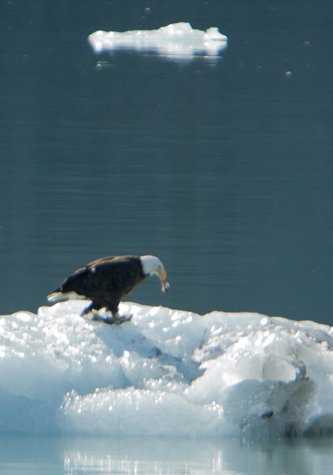 After leaving Margerie and Grand Pacific glaciers behind, we sailed into Johns Hopkins Inlet. We were all mesmerized by the beauty of the glacier and the surrounding peaks. Hundreds of harbor seals were seen in the distance, as they spent some calm time on the floating ice. We even saw a scavenging bald eagle perched on a small bergy bit.