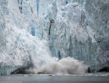 Hot coffee and the comfort of new friends warmed us on the bow early on this chilly morning. Cameras softly clicking, we waited in blue light alongside immense tidewater ice flows. Both the Margerie and Johns Hopkins glaciers splashed great chucks of compressed snow from their faces while “white thunder” (a Tlinget description of that powerful cracking sound) reverberated across the fjords. Steep rock walls composed of exotic terranes offered rugged views. Hanging blue ice and huge waterfalls colored by glacial sediments dominated while here and there among the rocks and trees were red and yellow hues, a sure reminder that the season is turning to fall here in the far north.