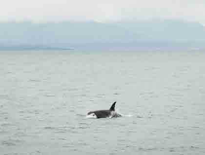 Our day started at dawn in Bartlett Cove where we picked up National Park Service Interpretative Ranger Andrea Markell and Hoonah Tlingit Cultural Interpreter William Horton-Garrison from Alaska Native Voices. As we cruised north up the bay we were soon accompanied by 25-30 killer whales that traveled with us for nearly an hour swimming and surfacing alongside the boat. By using on board catalogs of whales Carlos Navarro, our undersea specialist later identified this pod as AF22, considered “resident” killer whales of northern region of Southeast Alaska.