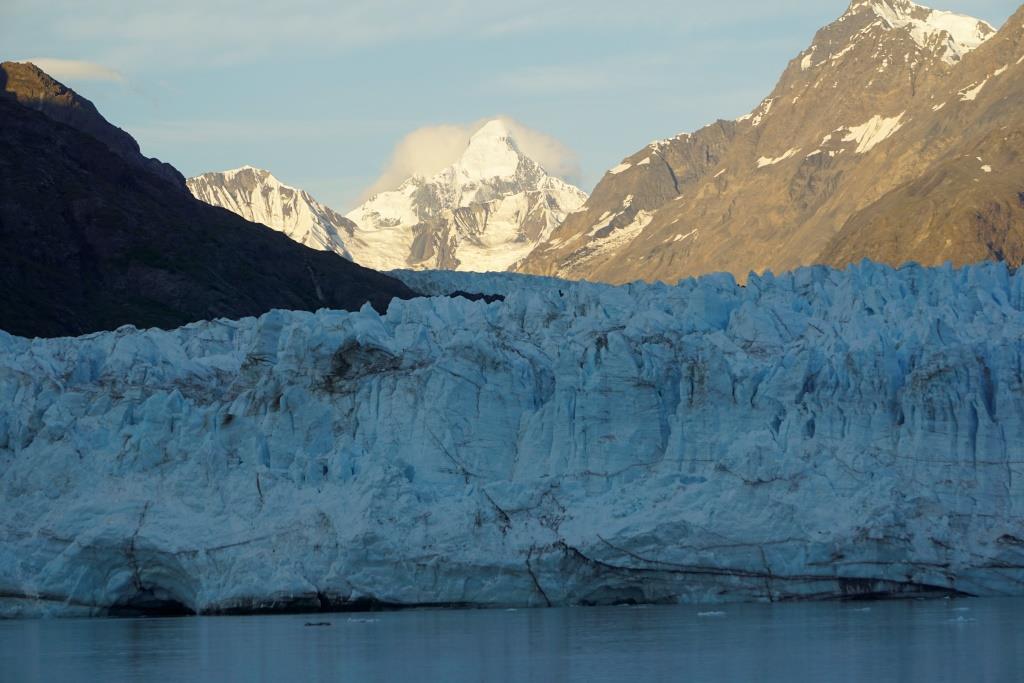 We sailed south after breakfast, heading toward Johns Hopkins Inlet and our second close look at a tidewater glacier. As we approached Jaw Point, the bedrock geology took center stage with an extraordinary exposure of the Tarr Inlet Suture Zone. These rocks, laid bare by the recent retreat of the Johns Hopkins Glacier represent a complex mélange of highly deformed rocks that were accreted to the edge of the growing North American continent during Mesozoic time. Rounding Jaw Point, we saw the Johns Hopkins Glacier rising from the water’s edge. A rare glacier in this time of climate change, it is advancing into the inlet from its mountain snowfield in the Fairweather Range, nearly ten miles west of its terminus.