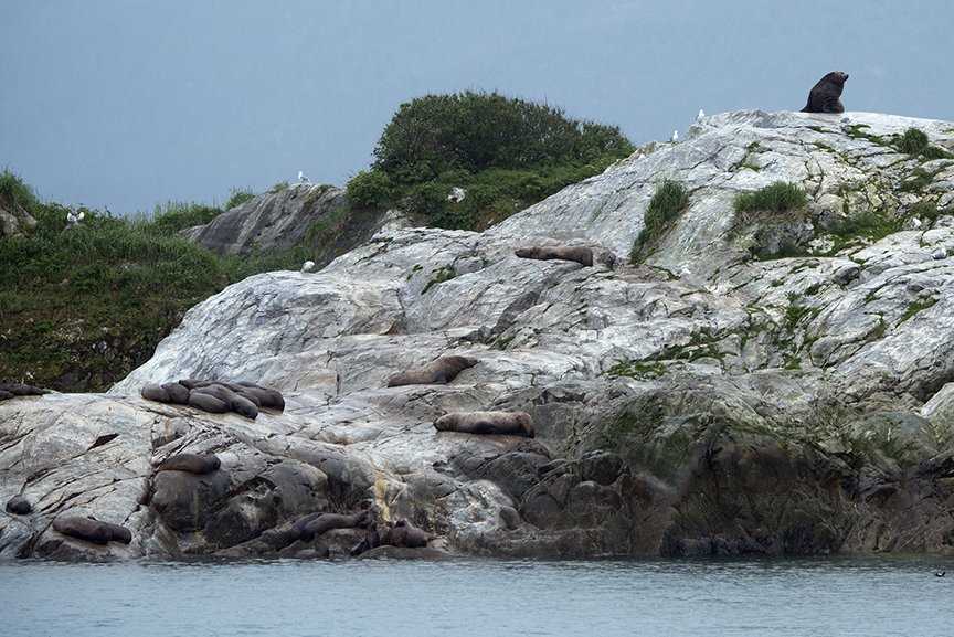 National Geographic Quest arose amidst light clouds within the protected waters of Ushk Bay. This area is known for a salmon stream and yields plenty of opportunity for kayaking and exploring the vast meadows of its inner waterways. On this day’s occasion, guests were able to hike and paddle their way along the coast of Ushk Bay and witness firsthand the life cycle of Pacific salmon making their way upstream. As we transited through Peril Strait, we were lucky to see humpback whales. These immense mammals were “lunge feeding” very near our ship. Being able to witness this event was unique for guests and staff. Lunge feeding is process through which individual whales push their gaping mouths through the surface and collect any fish or planktonic invertebrates in the process. Witnessing this behavior was truly a remarkable experience for all. We will cherish this moment for a lifetime.