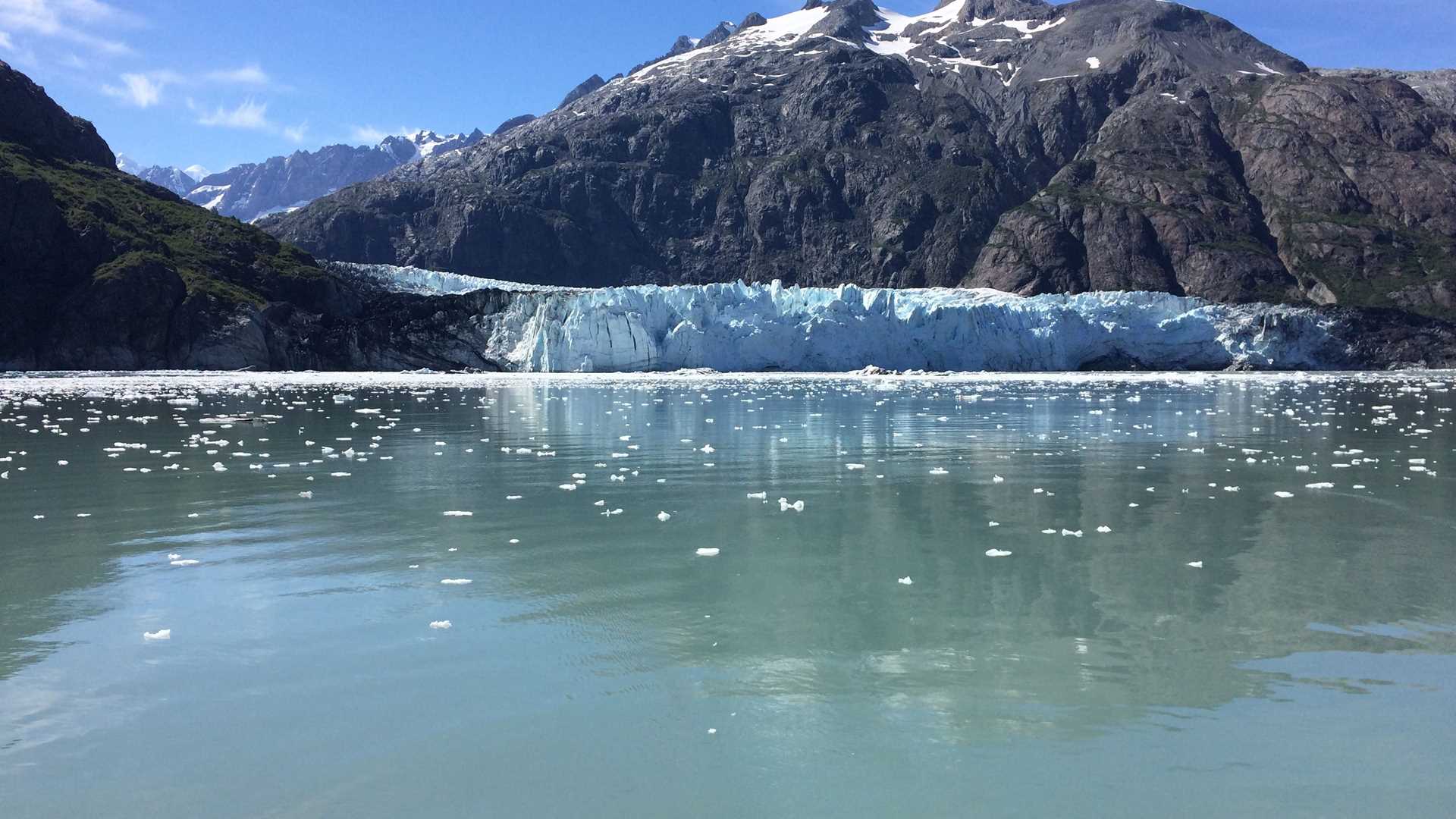 Further north we approached Gloomy Knob, where mountain goats dotted the cliffs. The killer whales joined us again and traveled alongside the ship and then passed us up to take the lead. After lunch we had arrived as far as the waterway could take us – to Margerie and Grand Pacific Glaciers. Although the Grand Pacific is sprinkled with dirt and rocks, it still overlooks the glacial valley it has carved over the past 250 years. Margerie Glacier, to the west of the Grand Pacific, is fed by the river of ice from Mount Fairweather – visible today just beyond the face of the blue calving glacier.