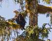 Headed back south, we were finally graced by the one animal that had been so elusive so far – a brown bear! In the distance, a bear was rummaging in the intertidal zone near some small pieces of grounded glacier ice. And, given the sunny, warm, blue-sky conditions, he was actually lounging in the cool water of the bay.