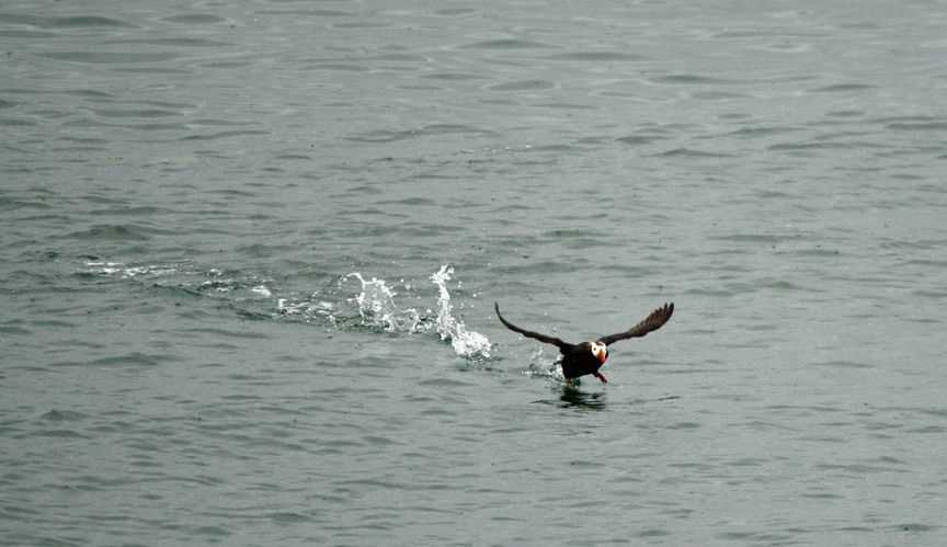 Early this morning, National Geographic Quest welcomed Glacier Bay National Park Service Ranger/Naturalist, John, and Tlingit Cultural Interpreter, Rachel to embark and spend the day with us to relate the remarkable story of Glacier Bay. Cruising up-bay, we were fortunate to find wildlife along the way. The skies cleared into a beautiful day. Reaching the northern extent of our voyage at Margerie and Grand Pacific Glaciers, our excitement and energy were high as we experienced the “White Thunder” of a calving tidewater glacier. There was scenic viewing all the way back to Bartlett Cove, where we had an opportunity for walks ashore. Back onboard, special guest Kim Heacox, local author/photographer, regaled us with stories and music.