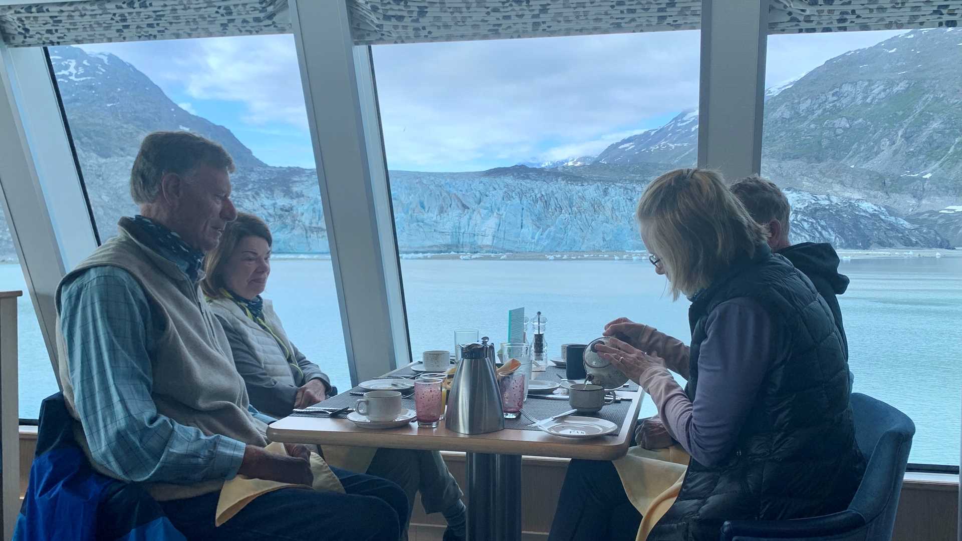 What a glorious morning we had waking and dining for breakfast with the Lamplugh glacier as our incredible backdrop. Next, we made our way around Jaw Point, where we had jaw-dropping views of a clear sunlit fjord leading to Johns Hopkins Glacier. We watched many black-legged kittiwakes dive for stunned food as the glacier calved. Making our way out through the clustered icebergs, we spotted hundreds of harbor seals resting atop the ice.