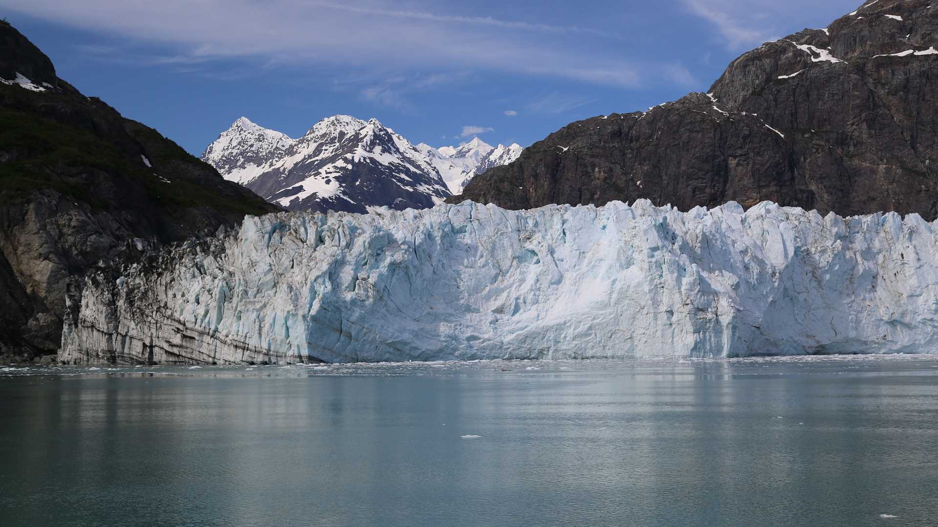 Today we woke to a beautiful, sunny day with gorgeous views of the snow-capped mountains flanking Tarr Inlet in Glacier Bay National Park. While enjoying a hot cup of coffee on the bow of National Geographic Quest, several Alaskan brown bears soon appeared off the portside by the rocky shoreline, including a mother bear with two cubs, as well as two huge male brown bears. At one point, the mother bear started running along the shoreline with her cubs for quite a distance, probably to keep the cubs safe from the large male bears. We enjoyed incredible views of brown bear behavior for over 30 minutes. Then, moving on to the end of Tarr Inlet, the Captain positioned the bow of National Geographic Quest facing Margerie Glacier, a tidewater glacier that calves into Tarr Inlet. We quietly listened to distant cracks and booms coming from inside the glacier as it slowly creeps towards its terminus, and a few blocks of ice calved off the left side of the terminus into the inlet. We had the privilege of having a Native Huna Tlingit woman come aboard to explain their culture, lifestyle, and spiritual connections to the land. It was a magical and emotional moment to quietly watch the morning unfold with Margerie Glacier spread across the bow of our vessel, while we listened to the soft beat of her hand-made drum and her songs to the earth, as she danced in her native robe with guests. Off the starboard side to the north, we saw morainal debris from the Grand Pacific and Ferris Glaciers at the end of Tarr Inlet, with glacial ice glistening in the distance.