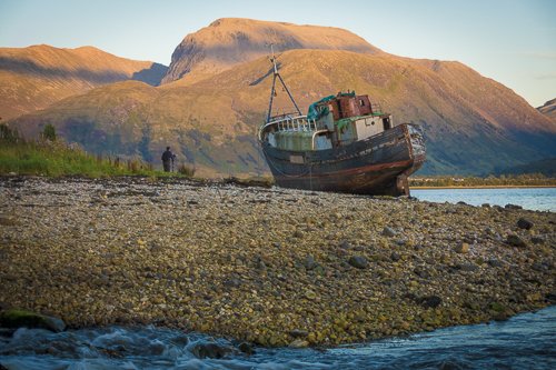 There followed our descent in a section of canal that contains the only surviving manually-operated road bridge at Moy, where the operator gave us a friendly wave. Crossing Loch Lochy we had a couple of presentations on history and photography respectively, before beginning our descent of Neptune’s Staircase, a flight of eight locks in succession, each one lowering the vessel by eight feet, until we arrived close to sea level at the Corpach Basin with just the sea lock on the canal’s Atlantic side ahead of us. Beside us the impressive bulk of Ben Nevis, often shrouded in mist but with today’s crystal-clear visibility it was possible to see the gentle southern path to the summit as well as the brooding northern rock-faces, the latter attracting ice-climbers to the area in the winter months making this an all-year destination for mountaineers.