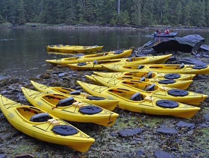 Within the expedition landing crafts and kayaks, the guests were privy to sightings of bald eagles perched high upon the snags, gazing down into the water in wait for available prey. The wildlife highlights included a river otter, harbor seal, along with some barrows goldeneye ducks. Cruising along the still water, the low tide turned a lake run off into a waterfall, allowing for a vision of the constant change of the intertidal zone - a daily, constant change that is often beyond the reach of our own imagination. It is easy to speak of nature’s beauty, but it is not until you find yourself amongst it that the stillness takes hold of you. Since leaving Seattle, our voyage has brought us farther and farther away from the known, and into the wild world of the Inside Passage.