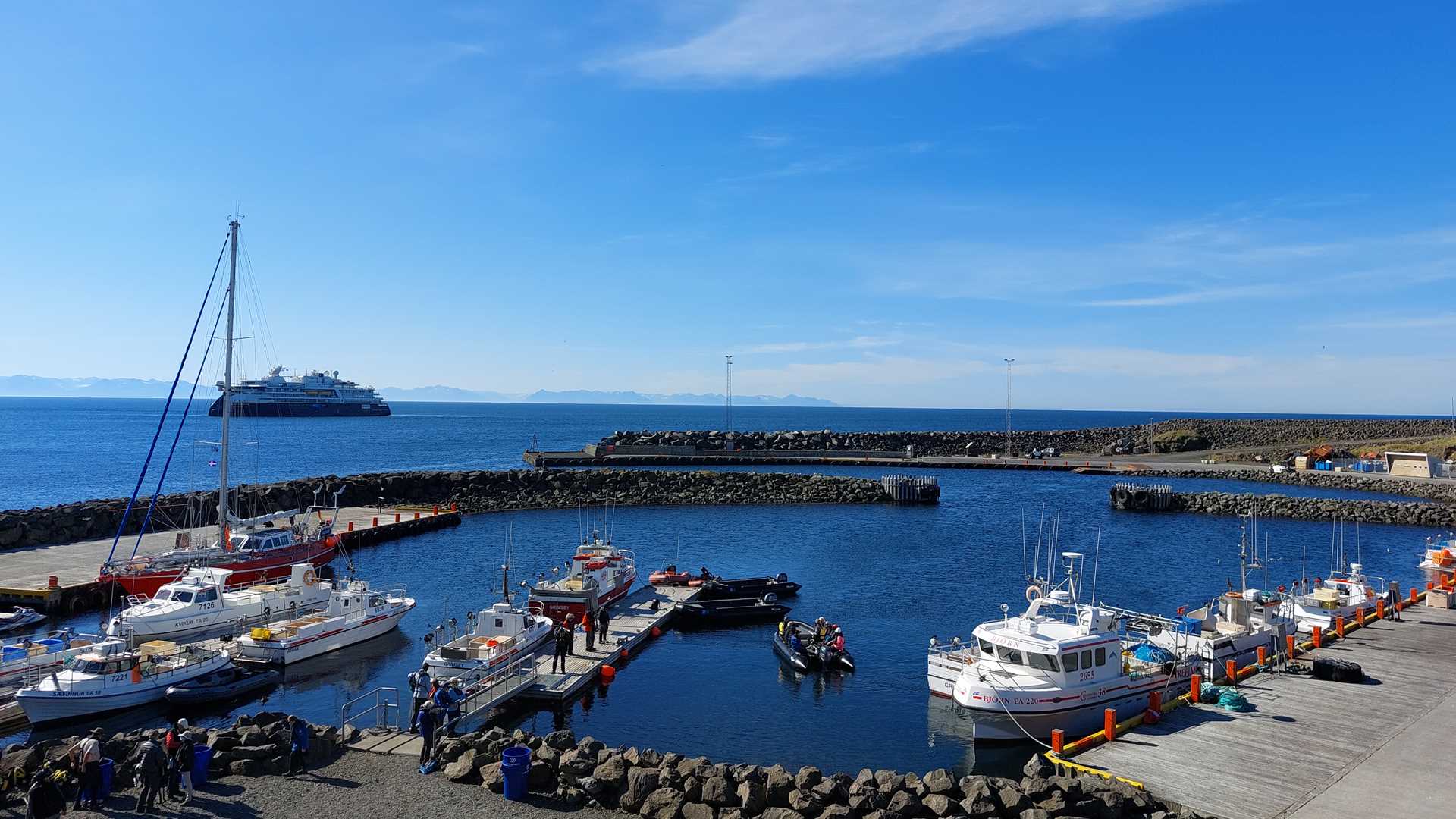 Grímsey is the northernmost island off the coast of Iceland, 41km from the mainland. All but the Southern shoreline consists of steep cliffs, with basalt in many parts. Although it lies on the Arctic Circle, the island enjoys a mild climate and supports enormous bird colonies. About 155 people live in Grimsey all year around, working in fishing, agriculture, and egg harvesting.