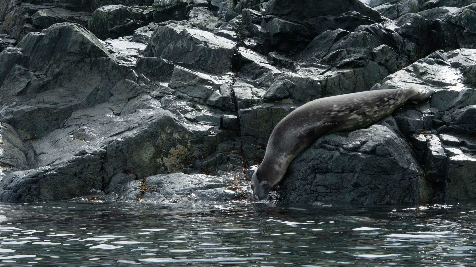 The afternoon brought us to Hydrurga Island, a hotspot for wildlife! The island is home to nesting chinstrap penguins and kelp gulls. Often because of its location, Weddell seals will haul out here for a snooze and occasionally you can see elephant seals. We should count ourselves lucky because a juvenile elephant seal was resting in the shallows on the back side of the landing, visible by the Zodiac cruise.