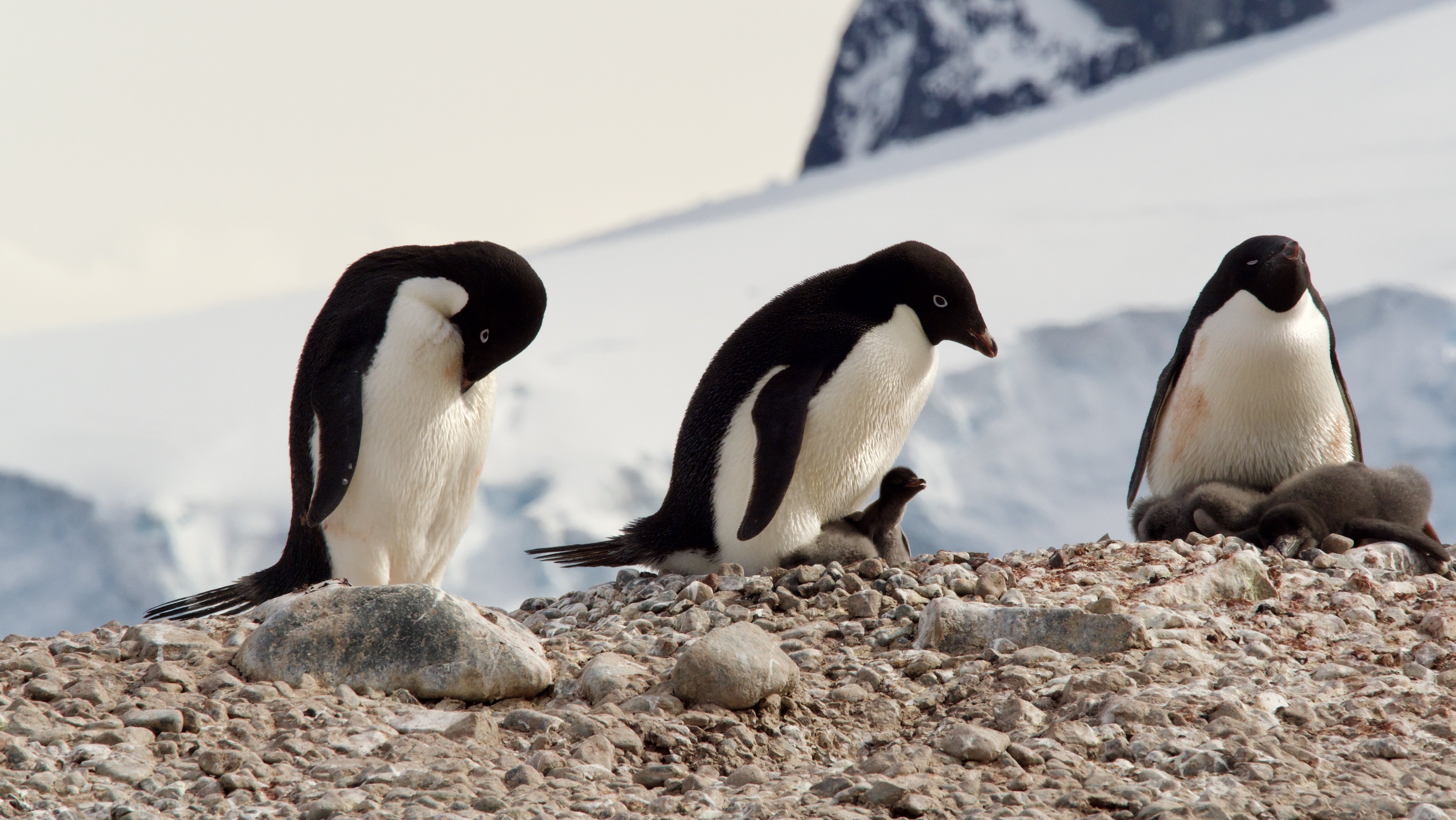 Grinder Rock is a group of flat-topped lichen- and snow-covered rocks located near a glaciated island coastline. Making our way along the edge we found numerous passageways and nooks to tuck our boats into and look at the beautiful steep rock cliffs towering over us. As we made our way around the island, we were treated to our first encounter with penguins.