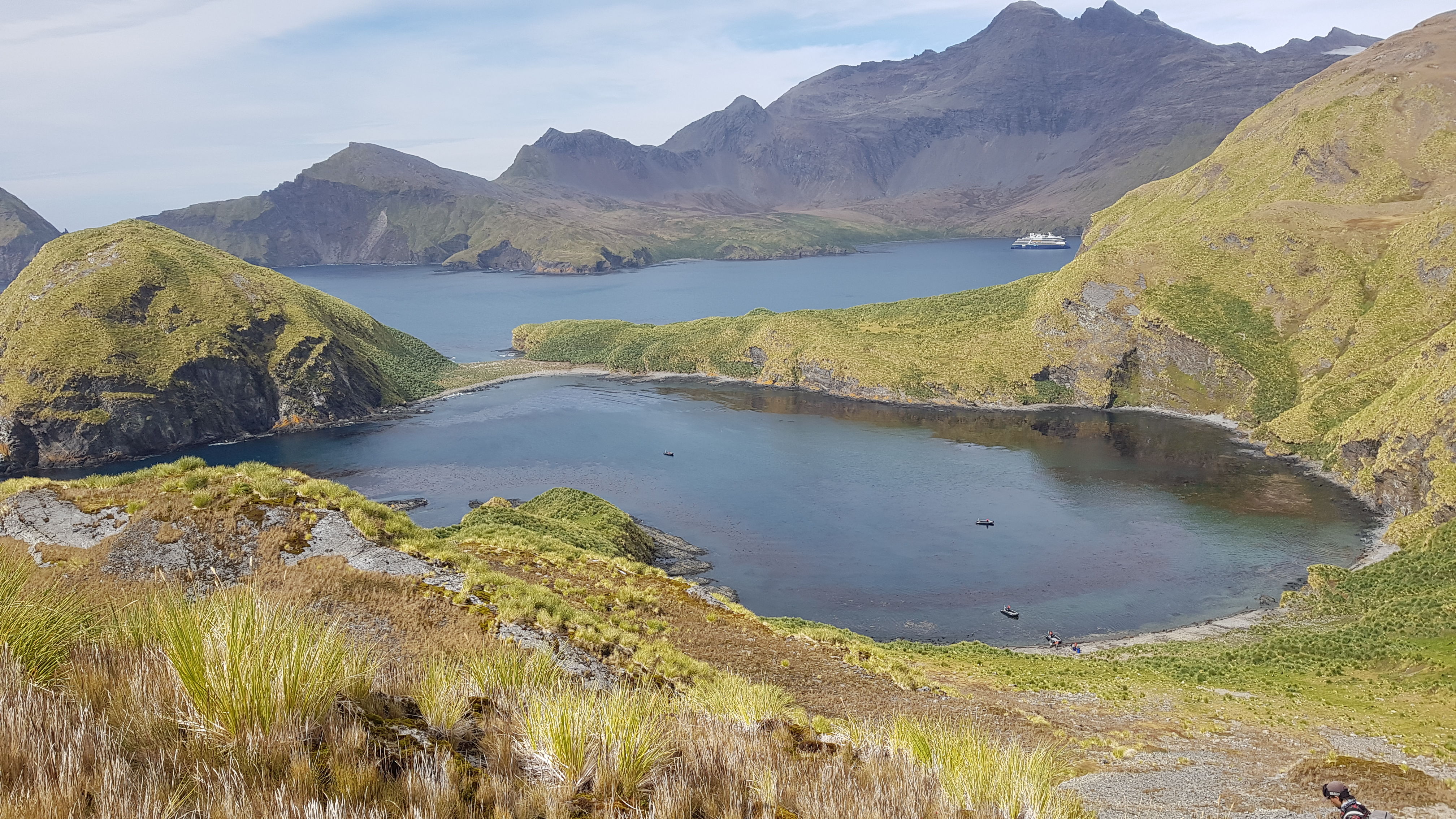 Today was a day filled with history! Grytviken was the first whaling station founded in 1904 by Carl Larsen. In the morning, we made our way ashore to enjoy the rich history of the place. A couple groups enjoyed hikes in the surrounding area, and everyone visited the museum and post office. We joined Conor Ryan, our whale expert, on a wonderful tour of the workings of the whaling station. Most importantly, we gave a toast to Shackleton, a.k.a. “the boss.” In the afternoon, we made a landing at Stromness and enjoyed a lovely stroll to the waterfall that Shackleton had to pass through, literally, on his way to salvation. A wonderful and historic day in South Georgia!