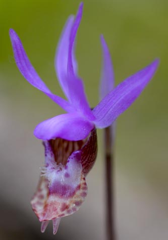 We chose the Cumshewa Inlet to land for operations, but most importantly to visit the ancestral land site of Barbara Wilson, our cultural interpreter. She shared with all her stories of family and the rich culture of her people. Some lucky expedition craft cruisers were able to land and experience the site where small Sitka spruce trees were growing up through the mosses around ancient memorial poles of the Haida. There were many other activities, including kayaking and hiking ashore on a bear trail. The soft, springy moss covered the forest floor as if it were frosting on a cake. Nothing was exempt from the green lining on downed tree branches, rocks, and tree trunks, soon to be nursery logs. Some of the hiking groups reported seeing many different kinds of fungi, bear and deer scat, and eagle bones. Other notable highlights were the new Sitka spruce growth and the captivatingly pink calypso orchid.
