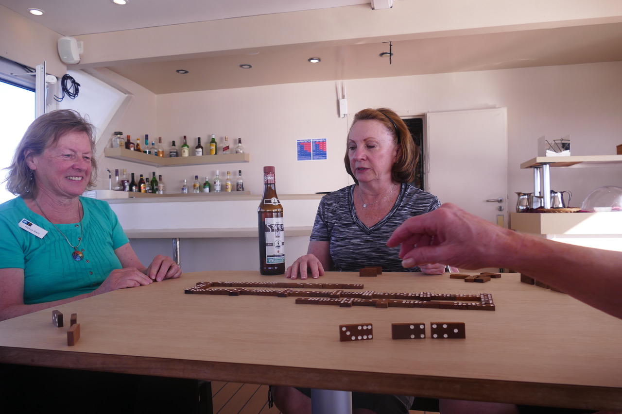 This is one of the best snorkeling sites we visit and often guests describe it as going into a fish tank. Today among the many kinds of fish we got to see, we also experienced being in the water with black-tipped reef sharks. We also walked to a viewing platform where we observed the famous red-footed boobies nesting, and the magnificent frigatebirds displaying their red, big gular pouch.