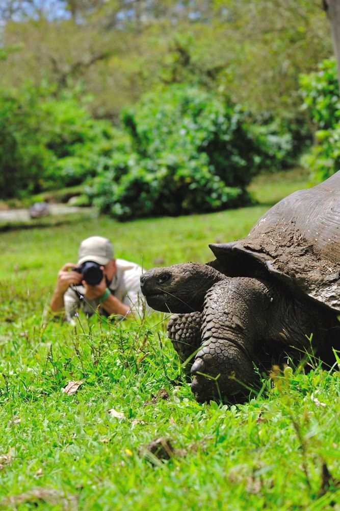 Embarking in small groups led by the naturalists, we strolled through the green fields finding tortoises galore. Equipped with rubber boots, it was easy to stride through the long grass and muddy paths. Every size giant tortoise imaginable was spotted—even two mating. The beautiful walk ended with a delicious lunch served at the foot of the ranch. Guests swapped stories of tortoises, bought local coffee beans and trinkets, and had the opportunity to relax in hammocks before we departed back to the Zodiacs.