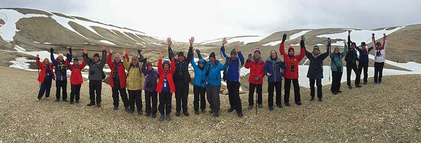 Just as the guests were preparing for the Captain’s Welcome Aboard Cocktail Party, our expedition leader Mike Moore made the announcement of a polar bear of the bow on the barren island of Zeipelodden in Palanderbukta. This was a quality bear that came right to the shore to investigate our presence and displayed all the cute characteristics of this apex predator of the north. The bear finally lost interest in our ship and meandered off across the island. The Captain Krüess Welcome Party was slightly delayed but well worth the dinner conversation and the perfect first bear encounter on this two-week trip.