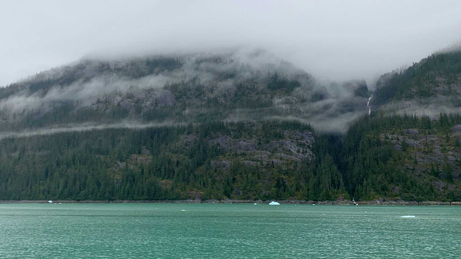 Our last day began quiet and still as a light drizzle fell, and broken, misty clouds hung low over the water. We crossed the shallow bar in Holkham Bay into the long fjord of Endicott Arm. The narrowing marine pathway winds more than twenty miles deep into the mountain wilderness on the border of Southeast Alaska and British Columbia. Carved thousands of years ago by the Dawes Glacier, we sailed near the face of the current glacier terminus.