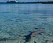 We woke up early in the morning as National Geographic Islander navigated along the northern part of Isabela Island. Slowly the sun appeared above the clouds surrounding Volcano Wolf. We spotted our first birds as Galapagos fur seals returned to shore from their night hunt. We enjoyed a great breakfast. Afterward, expedition leader Vanessa called everyone to the bow to celebrate as we crossed the equator. Our guests happily crossed the line. Approaching Punta Vicente Roca, the visitor site, we spotted Galapagos sea lions and a good number of ocean sunfish. The first activity of the day took place as we dropped anchor at Punta Vicente Roca. This is a spectacular geological site. The combination of the former volcano’s tall cliffs and the tuff cones formed later adds an amazing contrast to this unique visitor site. Our best tools for exploration, our Zodiacs, were lowered down, and off we went to explore the coast. We observed Nazca boobies and blue-footed boobies resting on the small ledges of the tuff cones. Galapagos sea lions swam close to our Zodiac, and Galapagos penguins rested on a broken piece of the tuff cone after feeding. What a wonderful sight! In a calm area, we found a good number of Pacific green sea turtles. The morning’s activities ended with snorkeling. Pacific green sea turtles, plenty of colorful fish, Galapagos marine iguanas and flightless cormorants surrounded us. It was a phenomenal experience! The ship was repositioned toward Fernandina Island. The youngest island of the archipelago, Fernandina is a highlight of our expedition. This island shows our guests the beginning of life. We observed animals thriving in the hostile environment. Pioneer plants like lava cacti grow on the lava fields, breaking down rocks little by little to create soil for the next generation of plants. Punta Espinoza is known for its huge colony of Galapagos marine iguanas. It is hard to distinguish the iguanas from rocks since they are so dark in color. On the other hand, colorful Sally Lightfoot crabs added contrast to the young, dark lava fields. We ended our walk as the sun was setting, returning to the ship with great memories. It was a fantastic day in the western part of the archipelago.