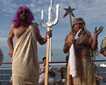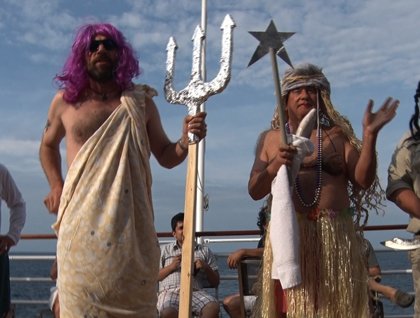 We proceed on into the lock at Bonneville Dam. Our sailors expertly throw a line over a floating bollard on our starboard side and this keeps our ship fast to the side of the lock as the great barn-door gate closes behind us and the lock begins to fill with water. The water flows in and the ship begins to rise in the lock. Meanwhile, we are gathered on the bow and we sing a rousing version of Roll On, Columbia Roll On, led by our expedition leader, Rab. Soon the water in the lock is at the level of the lake behind the dam, and the sailors take off the line and we sail forth 90 feet higher than before. Our sharp-eyed staff member, Jeff, spots a California sea lion bull; this animal has also come upriver through the lock.