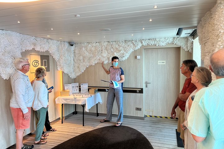 Today is the day that everyone dreads, the last sea day of the voyage as National Geographic Resolution powers her way towards the island of Rapanui. We experienced so many memories and powerful moments throughout this voyage. The early morning began with an art tour that highlighted the exhibits on the ship. Ably led by cultural specialist Jennifer Kingsley, guests were captivated by her interpretations of the art as she shared about the artists’ visions and ideas. National Geographic photographer Susan Seubert led a workshop on the workflow associated with digital photography. Afterwards, we began preparing for tonight’s slideshow by gathering the photos that will remind us of each day of this voyage. Mid-afternoon, expedition leader Alex Searle, an expert on Rapanui, began to prepare us for what awaits with a presentation about the island. Teatime was a special wine tasting event, and we ended the day with our Captain’s Farewell cocktail party. Captain Heidi Norling gave a heartfelt recap of the entire voyage, and we completed the day with an auction of some very special items. Kenneth Valdueza, a member of our deck team, illustrated a gorgeous chart of the region we have travelled. With fabulous, intricate pencil drawings, he brought the undersea world to life with representations of a blacktip reef shark, a spotted eagle ray, a sea turtle, and various creatures from the reef. Guests were blown away by his artwork, and two of our guests made a generous donation to the crew fund for the opportunity to take this beautiful artwork home with them. Cheers, everyone.