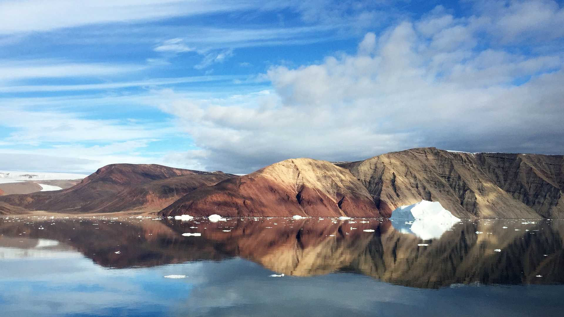 Turning into Bowdoin fjord, the usual plain Greenland landscape suddenly became into a geological art gallery. The rocks here are over 1,000 million years old, sedimentary marine deposits, sandstones mudstones, and carbonate beds laid down on the floor of a forgotten ocean. Despite this incredible age, they show no deformation, extraordinary given the caniptions our mantle has suffered over time. The weathering of these rocks has produced a painted landscape, ochre and olive, russet and rose, mauve and madder. From a pristine ice sheet behind the hills, a wide glacier flows down to the bay, launching a fleet of icebergs, each one manned by a crew of glaucous gulls sated with fish from the plankton-rich soup below the ice. On such a perfect day, we voted to stay here for the rest of the afternoon, and after landing intrepid long-distance walkers into the wilderness, we took to our Zodiacs and wandered among melting icebergs, butting through rafts of brash ice from the glacier. Kittiwakes darted down to snatch prey from the waters and we saw several gulls catch fish, probably the abundant polar cod, a sardine-sized species which thrives under ice floes and wherever ice melts. The glacier was set off perfectly against dark hills, and the bright sunshine sparkled off bergs and dazzled off still water. Switching off the engine and drifting in the silence we heard the sudden rush as an entire facet of the glacier collapsed, creating a huge wave that had the ice around us rearing and roaring. This is the High Arctic–blue sky, bare rock, and clean ice.