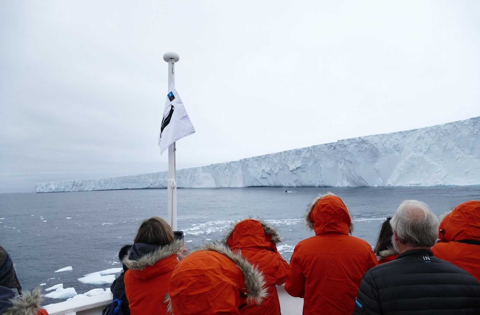 What an amazing expedition day in Antarctica! We left the Drake Passage behind and arrived at our first destination in the morning: the famous tabular iceberg A57a. This iceberg calved off an ice shelf in the Weddell Sea in 2008 and has since then traveled about 1,100 nautical miles to its current location. The visible part is about 40 meters above the water.