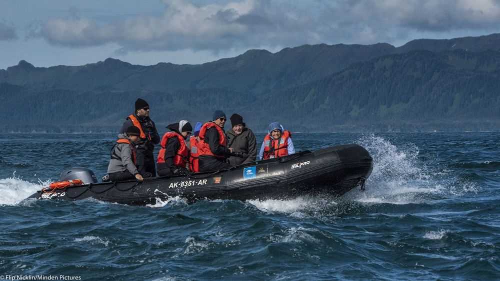 After exploring the glaciers and open waters of the northern Inside Passage, we sailed south through the night and returned to the starting point of our journey, Baranof Island. This island, along with Admiralty to the east and Chichagof to the north, is home to one of the highest densities of brown bears in the world. To search for evidence of the bears as they begin their yearly salmon feast and continue our exploration of the temperate rainforest, we anchored in Kelp Bay to kayak and hike the shoreline throughout the morning. Later in the afternoon, we welcomed Dr. Andy Szabo of the Alaska Whale Foundation to learn more about ongoing research taking place in Alaska on the unique bubblenet feeding behavior we witnessed earlier in the trip. Only in Alaska can you experience the forest, salmon, bears, and whales all in one day.