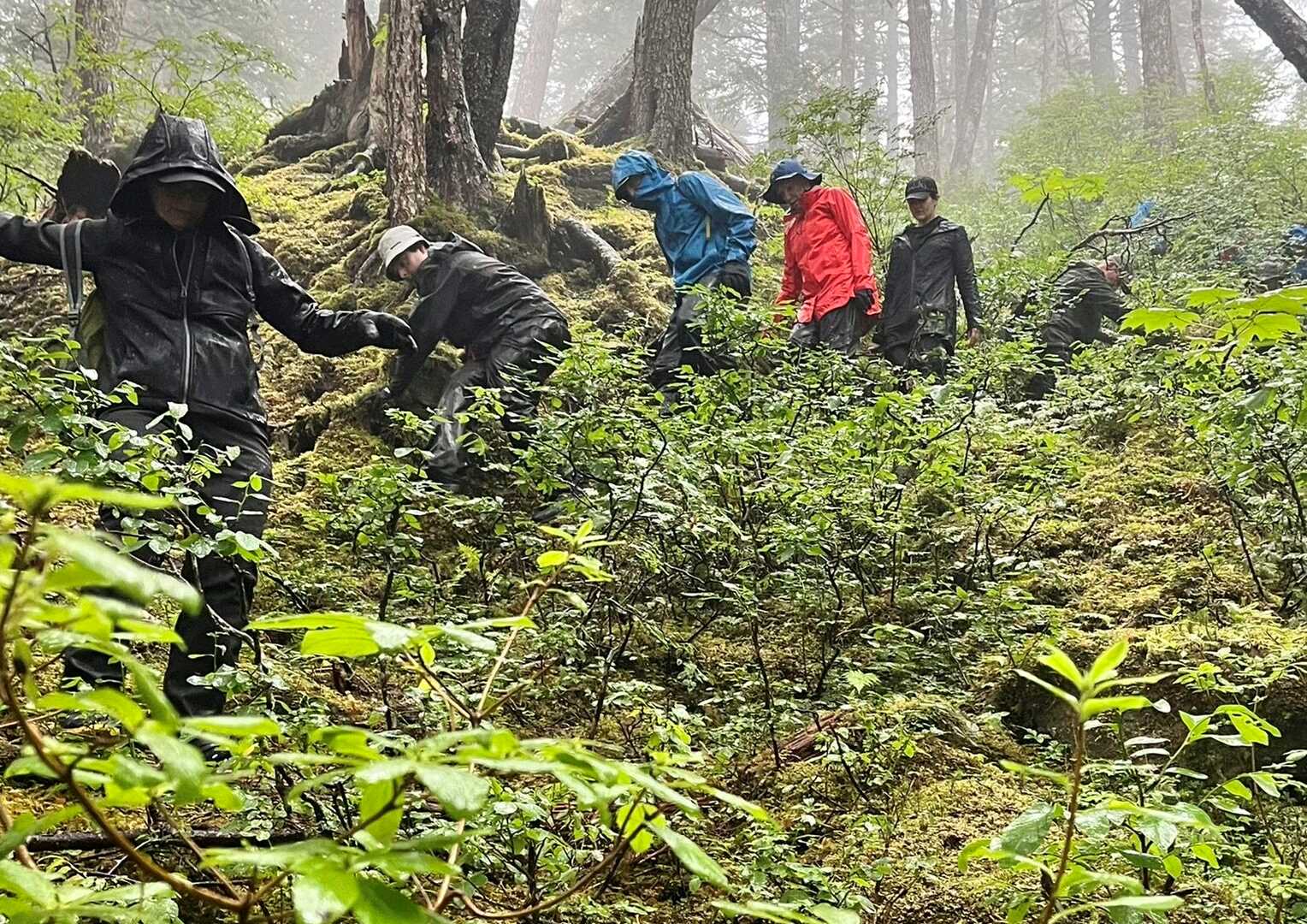 Photo caption and photographer: Long “Bush Whacking” hikers in Idaho Inlet. These hikes are not on manmade trails. They usually follow a bear trail, or no trail at all! Photo by Michael Marz