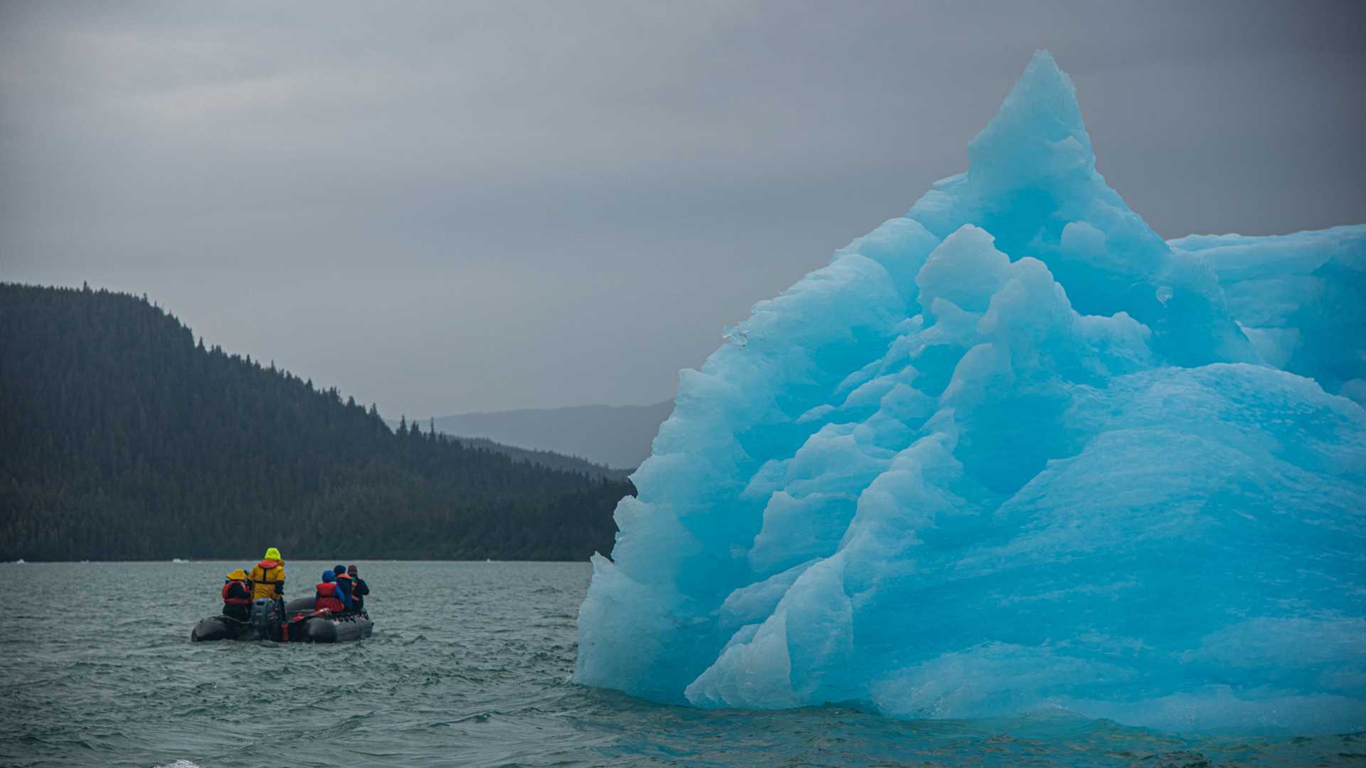 Today we woke up to a gorgeous day here in Southeast Alaska aboard National Geographic Sea Bird . The waters were glass calm as we enjoyed a delicious breakfast. Right as we were finishing up, the bridge spotted a lone male orca swimming around us. We all went out on the bow and were able to see the massive six-foot dorsal fin of the world’s largest dolphin species as it swam around the ship. After we watched this majestic creature fade into the distance, we began our sail up the breathtakingly beautiful Endicott Arm fjord. This area is hard to put into words. We sailed past icebergs with granite walls rising 3,000 feet out of the water directly on either side of the vessel. Waterfalls cascaded down from hidden snowfall and hanging glaciers. Glacial silt coming from the rock flows and mixes with the sea, creating a beautiful green hue in the ocean. Shayne, our Certified Photo Instructor, gave a presentation on smartphone photography and taught us all the settings for these incredible devices. It could not have come at a better time as the Dawes Glacier came into view. After a wonderful lunch, we headed out in our expedition landing crafts to explore the ice field in front of the glacier. Being this close to icebergs and the face of an active tidewater glacier is life changing. The blue of the ice, the crackling of icebergs, the haul outs of harbor seals, and the crash of calving is an experience that will not soon be forgotten. Back on the ship, we were treated to yet another amazing meal before heading into the lounge for a dual presentation by Naturalist Frankie Wilton and Certified Photo Instructor Shayne Sanders. They taught us about "The Story of Southeast Alaska" by talking about the important forest ecology and how to incorporate composition to capture this magic through the lens. It was an amazing first day, and we cannot wait for what is to come.
