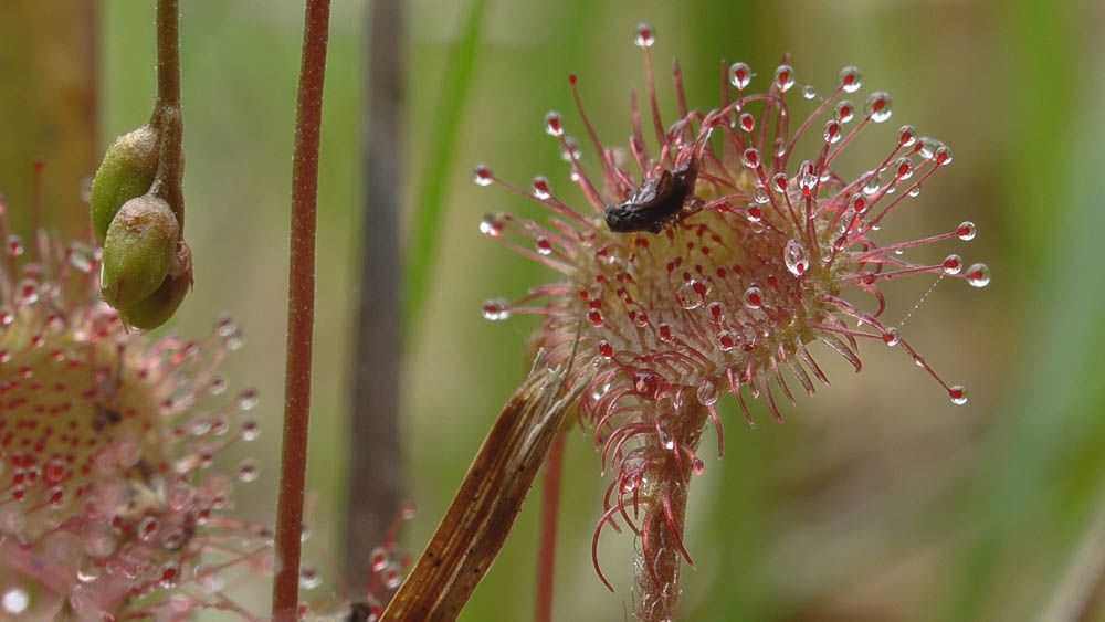 Guests aboard National Geographic Sea Lion awoke to glassy calm waters this morning; a dreamy landscape that was broken only by the quick breaths and triangular backs of two Dall’s porpoises cruising northward. As the morning fog lifted, everyone loaded into the DIBS for activities ashore at Ideal Cove. Long distance hikers traveled over boggy terrain via boardwalks that winded through patches of skunk cabbage, Sitka spruce, and stunted Lodgepole pine. Yellow pond lilies decorated the surface of the still waters at Hill and Crane Lakes and sundews stretched their sticky tendrils in search of insects in the wind.