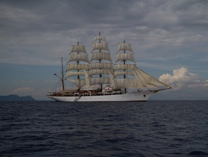 At midnight the Explorer was at 56°40’N / 59°55’W on a southeast heading bound for Quaker Hat on the southern part of Labrador. Just after sunrise, a pod of white-beaked dolphins greeted the National Geographic Explorer as we ploughed through the calm sea. This beautiful morning at sea was spent being on deck and bridge watching the seascape and enjoying the almost balmy temperature (45°F/7°C). Our historian David Barnes primed us about the world of the Norse, as we sailed along the coast of Markland (the Norse name for Labrador) en route to Vinland (the Norse name for Newfoundland). During late morning we were seeing our first real forest (with tall, upright spruce trees) on this voyage. We have come south of tree line and are definately out of the Arctic and into the boreal climate zone. Before lunch, National Geographic photographer Michael Melford, gave us a good introduction to the technical basics of digital photography.