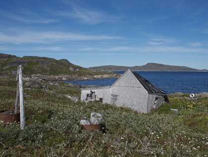 Since we passed White Bear Island last evening we logged 277 nautical miles before we stopped in the afternoon at the tiny settlement, Indian Harbour, that was once home to a few fishermen. After meandering in the archipelago along Cut Throat Island, Run-by-Guess Island and Ice Tickle Island, the National Geographic Explorer anchored in a bay, and the kayaks were launched and populated with guests who preferred to explore the local waters that way. Others went zodiac cruising between and around the small islands and still others took a long hike on the adjacent Mundy Island.