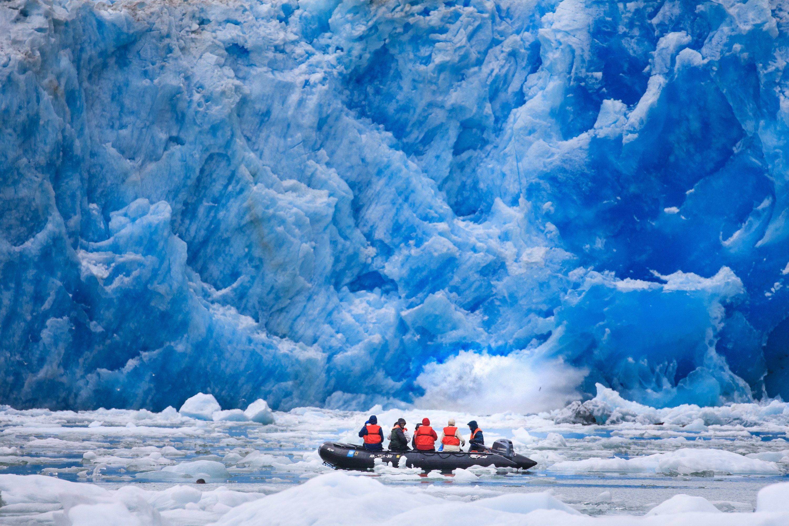 Today we woke up to a gorgeous day here in Southeast Alaska aboard National Geographic Sea Bird . The waters were glass calm as we enjoyed a delicious breakfast. Right as we were finishing up, the bridge spotted a lone male orca swimming around us. We all went out on the bow and were able to see the massive six-foot dorsal fin of the world’s largest dolphin species as it swam around the ship. After we watched this majestic creature fade into the distance, we began our sail up the breathtakingly beautiful Endicott Arm fjord. This area is hard to put into words. We sailed past icebergs with granite walls rising 3,000 feet out of the water directly on either side of the vessel. Waterfalls cascaded down from hidden snowfall and hanging glaciers. Glacial silt coming from the rock flows and mixes with the sea, creating a beautiful green hue in the ocean. Shayne, our Certified Photo Instructor, gave a presentation on smartphone photography and taught us all the settings for these incredible devices. It could not have come at a better time as the Dawes Glacier came into view. After a wonderful lunch, we headed out in our expedition landing crafts to explore the ice field in front of the glacier. Being this close to icebergs and the face of an active tidewater glacier is life changing. The blue of the ice, the crackling of icebergs, the haul outs of harbor seals, and the crash of calving is an experience that will not soon be forgotten. Back on the ship, we were treated to yet another amazing meal before heading into the lounge for a dual presentation by Naturalist Frankie Wilton and Certified Photo Instructor Shayne Sanders. They taught us about "The Story of Southeast Alaska" by talking about the important forest ecology and how to incorporate composition to capture this magic through the lens. It was an amazing first day, and we cannot wait for what is to come.