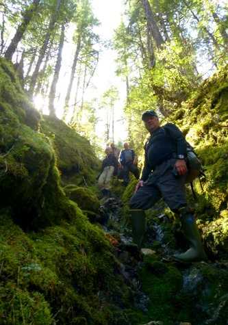 After lunch, National Geographic Sea Bird repositioned to Idaho Inlet on the north shore of Chichagof Island. While some of us set out to sight-see on the expedition landing crafts, the rest headed for shore to explore Fox Creek and the surrounding forest. With no established paths, we followed bear trails through dense and tangled temperate rain forest. A few groups found direct evidence of brown bears – fresh claw marks and hair on the bark of trees. Another group pressed deep into the forest, bushwhacking over several creeks and up the side of a mountain, lightheartedly questioning the “moderate’ label given to the hike before they left. Whichever path they chose, everyone returned happy and invigorated. Somehow, each day keeps rivaling the one before it.