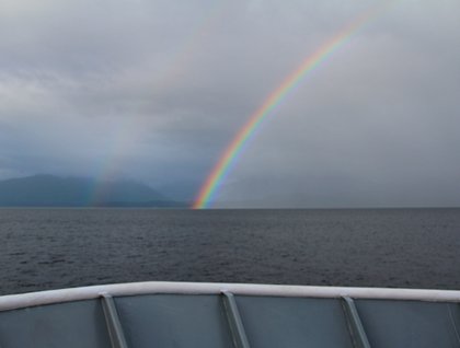 Our return to the ship was graced by a full and vibrant rainbow, followed by a presentation on sea otters and appetizers. The evening was spent searching for further humpback whale activity along the boundary of Glacier Bay National Park.
