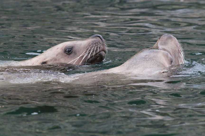 Between the Gulf of Alaska and the northern reaches of the Inside Passage stand the precipitous, forested Inian Islands. Turbulent tidewaters rush past the islands, stirring up nutrients and fish from the ocean depths, which in turn attract eagles, seabirds, and marine mammals that come to feed. This morning, we explored “the Inians” from our expedition landing craft, gaining an intimate view of the dynamic oceanography and biology that makes them so special. Of all the wildlife that we observed, it was surely the Steller sea lions that were the most captivating. Many of these gregarious (and noisy!) pinnipeds were as curious about us as we were of them; they splashed beside our boats, raised their heads out of the water to get a better look at us, and nibbled on the metal rings that hung from our boats. A few even traveled with us, porpoising in our wake as we finally left to return to the ship.